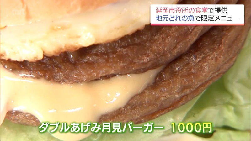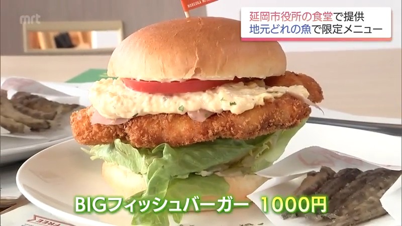 延岡市役所の食堂に並んだのは、地元で獲れたニベやアジを使ったハンバーガーやカレーライス。